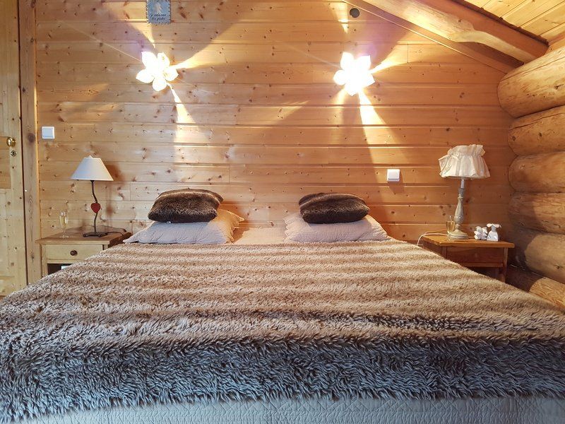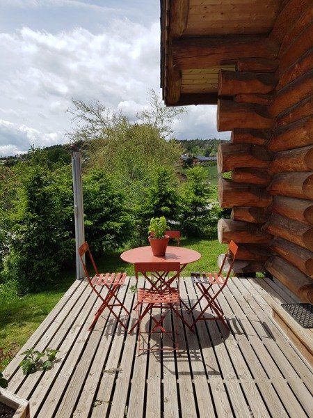 Quelle que soit la saison, vous apprécierez l’authenticité et le confort de notre chalet en fuste de sapins noirs.